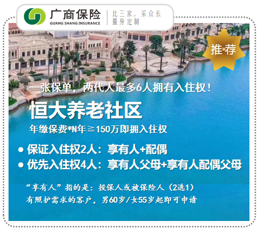 例如:恒大養(yǎng)生谷的保單入住權(quán),就十分人性化,可實現(xiàn)“一張保單享有6人入住權(quán)”!