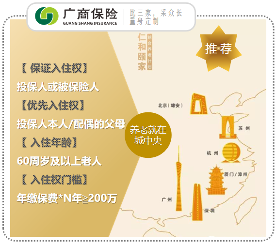 又如:招商仁和養(yǎng)老社區(qū),一份保單雖然入住權(quán)只有四個,但由于養(yǎng)老社區(qū)大多在城區(qū)(例如廣州),既能感受城市熱鬧,也便于老人和子女的每日緊密聯(lián)系,這類入駐權(quán)也十分搶手!